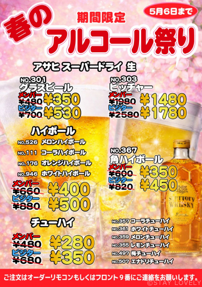 期間限定!春のアルコール祭り開催!