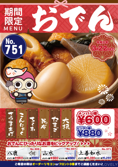 寒い季節にぴったりの定番おでんセットが期間限定で味わえます